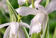 黄花白及:草本植物,植株高25-55厘米。假鳞茎扁斜卵形,较大,上面具荸荠似的环带,富粘性。茎较粗壮,常具4枚叶。叶长圆状披针形,先端渐尖或急尖,基部收狭成鞘并抱茎。花序具3-8朵花,…全部>>