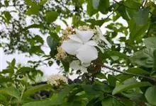 琼花是荚蒾科荚蒾属落叶或半常绿灌木植物,又名扬州琼花、蝴蝶木、八仙花、聚八仙、蝴蝶戏珠花、毛琼花。琼花高达4米;树皮灰褐色或灰白色。叶纸质,卵形至椭圆形或卵状矩圆形。聚伞花序,花冠白色,辐状。…全部>>