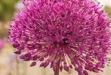 大花葱是石蒜科葱属多年生常绿草本。株高30-60厘米;有鳞茎,呈圆形;叶呈宽线形至披针形,绿色;花葶高大,高约1米,呈伞形花序球状,有数百朵小花,紫红色;种子呈球形,黑色;花期5-6月。…全部>>