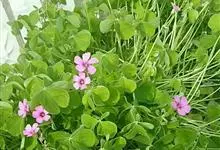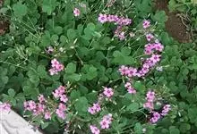 红花酢浆草别名铜锤草、大酸味草、幸运草等,是酢浆草科酢浆草属的多年生直立草本植物。其无地上茎,地下部有球状鳞茎;叶基生,叶柄长5~30cm或更长,被毛;花瓣5,倒心形,淡紫色至紫红色,基部颜色较深。…全部>>