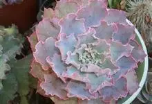 女王花笠,又名扇贝石莲花、女王花舞笠,是景天科拟石莲花属的多肉植物。由美国加利福尼亚州的育种师Dick Wright于1964年培育。特征是呈大波浪状褶皱的红色叶缘和气质高贵的粉紫色调。…全部>>
