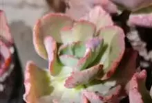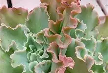 女王花笠,又名扇贝石莲花、女王花舞笠,是景天科拟石莲花属的多肉植物。由美国加利福尼亚州的育种师Dick Wright于1964年培育。特征是呈大波浪状褶皱的红色叶缘和气质高贵的粉紫色调。…全部>>
