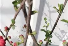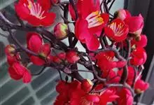 贴梗海棠Nakai)是蔷薇科、木瓜海棠属植物。落叶灌木,高达2米,枝条直立开展,有刺。叶片卵形至椭圆形,稀长椭圆形,长3-9厘米,宽1.5-5厘米。花先叶开放,3-5朵簇生于二年生老枝上。…全部>>