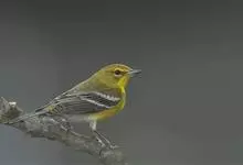 极北柳莺:体长11-13厘米,体小偏灰橄榄色,具明显的黄白色长眉纹,眼先及过眼纹近黑。上体概呈灰橄榄绿色;具甚浅的白色翼斑,大覆羽先端黄白色,形成一道翅上翼斑;中覆羽羽尖成第二道模糊的翼斑;下体白色…全部>>