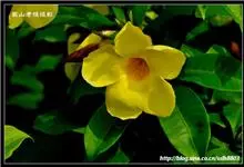 大花软枝黄蝉是软枝黄蝉的一个变种,夹竹桃科黄蝉属植物。藤状灌木,长达4米,枝条软弯垂,具白色乳汁。叶纸质,椭圆形、卵圆形或倒卵形,花序着花4-5朵,花冠比原变种大形,橙黄色,花冠喉部具5个发亮的斑点…全部>>