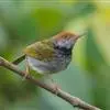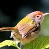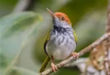 普通缝叶莺,是雀形目鹅科莺亚科缝叶莺属一种。体长10-14厘米,体重7-10克,雄鸟前额棕红,头顶至枕棕橄榄褐,上体橄榄绿染黄,飞羽及尾羽暗褐;繁殖期雄鸟的中央尾羽特形延长,下体淡皮黄白色。…全部>>