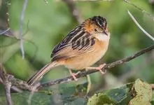 金头扇尾莺体小而具褐色纵纹的莺。嘴细长,略向下弯;翼短,体型娇小,尾长。下体皮黄,喉近白,尾深褐,尾端皮黄。雌雄羽色相近,羽色单调。繁殖期雄鸟顶冠亮金色,腰褐色。雌鸟及非繁殖期雄鸟头顶密布黑色细纹,…全部>>