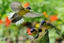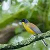 黄喉噪鹛体型略小,顶冠蓝灰色,特征为具黑色的眼罩和鲜黄色的喉。上体褐色,尾端黑色而具白色边缘,腹部及尾下覆羽皮黄色而渐变成白色。黄喉噪鹛隐匿于亚热带常绿林和浓密灌丛,于地面杂物中取食,喜食昆虫,…全部>>