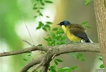 黄喉雀鹛是雀眉科、拟希鹛属小型鸟类,体长11-12厘米。头顶浅黄色具黑色鳞状斑,头顶两侧各有一道黑色侧冠纹,眉纹浅黄色、长而宽阔。上体灰绿色,两翅和尾褐色而具浅黄色窄缘。下体淡黄色。特征明显,…全部>>