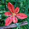 射干 Redouté)是鸢尾科射干属多年生草本植物。根状茎为不规则的块状,斜黄色或黄褐色;花橙红色,散生紫褐色的斑点;花药呈条形;子房下位,倒卵形;蒴果倒卵形或长椭圆形;种子圆球形,黑紫色,有光泽。…全部>>