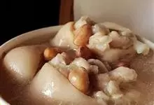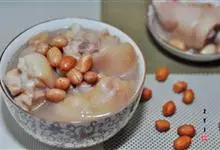 花生猪蹄汤是用花生、猪蹄制作的一道家常菜。 花生含有维生素E和一定量的锌,能增强记忆,抗老化,延缓脑功能衰退,滋润皮肤。全部>>