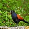 褐翅鸦鹃,是鹃形目鸦鹃科鸦鹃属的鸟类。褐翅鸦鹃的身体为黑色;头颈和胸带蓝紫色金属光泽并具黑亮的羽干纹,下胸至腹部泛金属绿光泽;两翼和肩部为棕栗色,外侧飞羽具暗色羽端,尾羽闪铜绿色光泽;虹膜赤红色,…全部>>