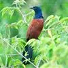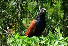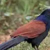 褐翅鸦鹃,是鹃形目鸦鹃科鸦鹃属的鸟类。褐翅鸦鹃的身体为黑色;头颈和胸带蓝紫色金属光泽并具黑亮的羽干纹,下胸至腹部泛金属绿光泽;两翼和肩部为棕栗色,外侧飞羽具暗色羽端,尾羽闪铜绿色光泽;虹膜赤红色,…全部>>
