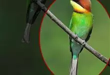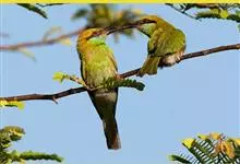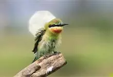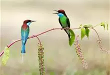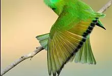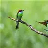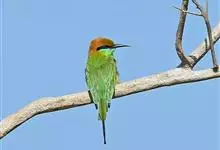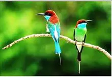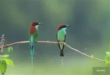绿喉蜂虎是佛法僧目、蜂虎科的小型鸟类,共有9个亚种。身长22-25厘米,翼展29-30厘米,体重15-20克。喉绿色,额部、头顶至上背为锈红色,其余上体均为亮绿色。中央尾羽延长且端段狭细,…全部>>