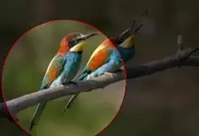 蓝喉蜂是蜂虎科蜂虎属鸟类。体长26-28厘米,嘴长而弯曲,有明显细长的中央尾羽。头部、颈部和背部为巧克力色,有黑色眼纹。喉部、腰部和尾羽为蓝色。腹部和两翼为绿色。幼鸟外观似成鸟,头部、颈部和背部为绿色,…全部>>