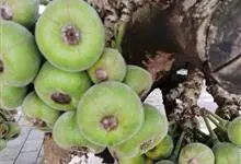 大果榕是桑科榕属的小乔木,株高可达10米;幼枝被柔毛;叶互生,宽卵状心形或近圆形;雄花无梗、匙形、花丝长,雌花生于雌株榕果内,子房白色;榕果簇生于树干基部或老茎短枝上、扁球形或陀螺形,…全部>>