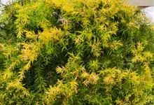 黄金串钱柳是桃金娘科白千层属常绿乔木植物。其树干暗灰色,树皮不易剥落;具油腺点,香味浓郁;叶革质互生,披针形或狭长圆形,两端尖;叶色全年金黄至鹅黄色;枝条细长,柔软且韧性好;穗状花序生于枝顶;花白色,…全部>>