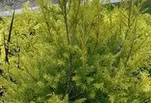 千层金是桃金娘科白千层属植物,常绿乔木。树高可达6-8米,冠幅锥形。主干直立,枝条密集、细长、柔软,嫩枝红色。叶片金黄色,披针形,长2-2.5米,宽0.2厘米左右,具芳香味。穗状花序,花瓣绿白色。果…全部>>