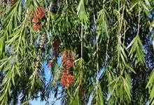 垂枝红千层 Cheel.)是桃金娘科红千层属植物,常绿灌木或小乔木,高可达6米;树皮暗灰色,不易剥离;幼枝和幼叶有白色柔毛。叶互生,条形,长3-8厘米,宽2-5毫米。穗状花序,有多数密生的花;花期长,…全部>>