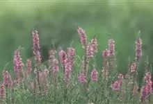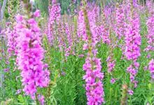千屈菜是千屈菜科千屈菜属的多年生草本植物;根茎粗壮;叶披针形或宽披针形,无柄;花序簇生,呈聚伞状,花梗及花序梗甚短,花枝似一大型穗状花序,红紫色或淡紫色,苞片宽披针形或三角状卵形;果实为蒴果,扁圆形。…全部>>
