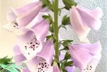 毛地黄是车前科、毛地黄属一年生或多年生草本植物。株高0.5—1米,茎直立,少分枝,全株被灰白色短柔毛和腺毛叶基生,呈莲座状,卵圆形或卵状披针形。顶生总状花序,花冠钟状,紫红色,内面有浅白斑点。菊果卵形。…全部>>