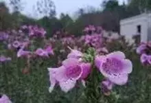 毛地黄是车前科、毛地黄属一年生或多年生草本植物。株高0.5—1米,茎直立,少分枝,全株被灰白色短柔毛和腺毛叶基生,呈莲座状,卵圆形或卵状披针形。顶生总状花序,花冠钟状,紫红色,内面有浅白斑点。菊果卵形。…全部>>