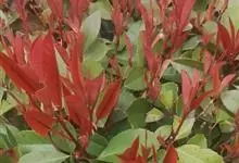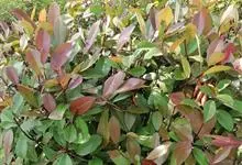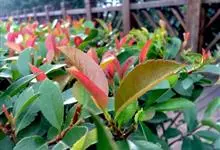红叶石楠 是蔷薇科,石楠属杂交种,为常绿小乔木或灌木,乔木高可达5米、灌木高可达2米。叶片革质,长圆形至倒卵状、披针形,叶端渐尖,叶基楔形,叶缘有带腺的锯齿,花多而密,复伞房花序,花白色,梨果黄红色,…全部>>