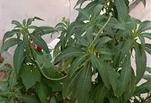 洋金凤 Sw.)是豆科、云实属植物。枝光滑,绿色或粉绿色,散生疏刺。二回羽状复叶;羽片4-8对,对生;小叶7-11对,长圆形或倒卵形,顶端凹缺;小叶柄短。总状花序近伞房状,顶生或腋生,…全部>>