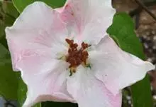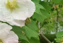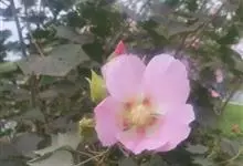 木芙蓉,锦葵科木槿属落叶灌木或小乔木。小枝上有细绒毛;叶片为卵状心形,托叶为披针形,常早落;花单生,花萼为钟形,花冠初为白色或淡红色,后逐渐变为深红色;果实为扁球形,有淡黄色的毛附着。花期8到10月。…全部>>