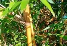 黄金间碧竹 McClure),禾本科簕竹属大型乔木。竿丛生圆柱形,鲜黄色间有宽窄不等的绿色纵条纹;竿基数节有短气生根;箨环上下方各有灰白色绢毛环;箨鞘鲜时绿色有宽窄不等的黄色纵条纹;箨叶直立三角形,…全部>>