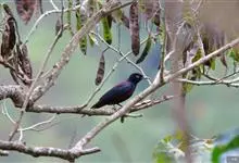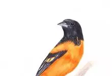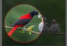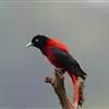 朱鹂:中等鸟类,体长23-28厘米。雄鸟绛紫红色,头、上胸及翼黑色。雌鸟上背及背部深灰色,尾覆羽及尾绛紫红色,腹部及下胸白而密布黑色纵纹。与鹊色鹂幼鸟的区别在上背灰色较深,下体白色较少且纵纹较粗。…全部>>