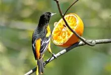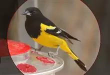 金黄鹂是中型鸣禽。体长24厘米。头全黄色。体羽鲜丽,主要由为黄和黑的颜色组合,雌鸟与幼鸟多具条纹。雄性成鸟眼先、翼及尾基部黑色,其余为鲜亮黄色。雌鸟较暗淡而多绿色。幼鸟偏绿色,下体具细密纵纹。虹膜红…全部>>