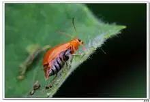 黄守瓜又名黄足黄守瓜,俗称黄莹、瓜莹、瓜守、瓜叶虫、瓜黄叶甲、瓜娃子等,是鞘翅目叶甲科守瓜属动物。长椭圆形,体长8-9毫米,身体除中胸、后胸及腹部腹面为黑色外,其余均为黄色或橙红色,且有光泽;复眼圆形,…全部>>