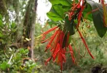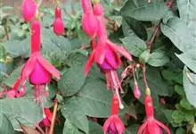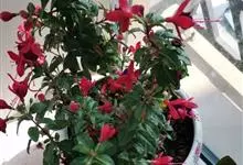 倒挂金钟是柳叶菜科倒挂金钟属亚灌木植物。茎直立,多分枝;幼枝带红色,被短柔毛与腺毛,老时渐无毛;叶对生,卵形或窄卵形,脉常带红色;常带红色,被短柔毛与腺毛;花筒红色,筒状钟形,…全部>>