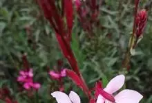 山桃草是柳叶菜科、山桃草属植物。多年生宿根草本。高60-100厘米,叶无柄,椭圆状披针形或倒披针形,花期晚春至初秋;多花型,花蕾白色略带粉红,初花白色,谢花时浅粉红。花紫红色,成密生的穗状花序,…全部>>
