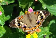 美眼蛱蝶为鳞翅目、蛱蝶科、眼蛱蝶属节肢动物。除西北外,全国各地均有分布,国外分布于日本及东南亚。幼虫以马鞭草科的过江藤、车前草科的车前草等为食。全部>>