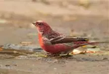 藏朱雀:全长约17-18厘米。雄鸟头部深红色具光辉,喉部暗红色具白色点斑;背部灰白色,各羽具玫瑰红色羽端,形成许多斑纹;腰部淡玫瑰红色;翅暗褐色,沾灰白,羽端沾玫瑰红或灰白色;尾暗棕色,端缘玫瑰红色…全部>>