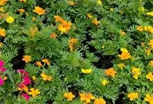 万寿菊是菊科万寿菊属一年生草本植物,别名孔雀菊、缎子花、臭菊花、西番菊、红黄草、小万寿菊、臭芙蓉、孔雀草。万寿菊茎近基部分枝。叶羽状分裂,长5-10厘米,宽4-8厘米,裂片长椭圆形或披针形,具锐齿,…全部>>