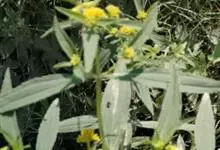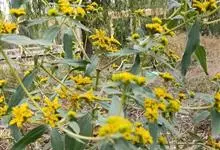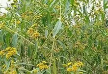黄顶菊 Kuntze)是菊科黄顶菊属植物:一年生草本植物。株高20-100厘米,最高的可达到3米左右。茎直立、紫色,茎上带短绒毛。叶子交互对生,长椭圆形,叶边缘有稀疏而整齐的锯齿,基部生3条平行叶脉。…全部>>