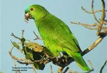 黄颈亚马逊鹦鹉是鹦形目鹦鹉科鸟类。体长38厘米,对趾型足,两趾向前两趾向后,羽色鲜艳,外表帅气;羽毛大部分是绿色;眼睛虹膜为橘色;头冠、眼喙之间和大腿处分布有黄色;在翅膀的转折处有少许红色点缀,…全部>>