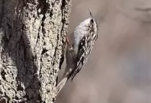 旋木雀是旋木雀科旋木雀属的一种动物。小型鸟类,体长12~15厘米,平均重10克。嘴长而下曲,上体棕褐色具白色纵纹,腰和尾上覆羽红棕色,尾黑褐色,外翈羽缘淡棕色,翅黑褐色,翅上覆羽羽端棕白色,…全部>>