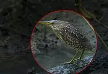 紫背苇鳽是鹭科、苇鳽属动物,为涉禽,体长约33厘米。头顶黑色,后头至尾上覆羽暗栗褐色;翅上覆羽橄榄黄色;下体浅棕黄色。多生活于水库和山脚边的稻田、芦苇丛、滩涂及沼泽草地,在西藏见于海拔2300米的农田,…全部>>