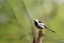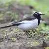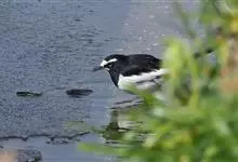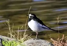 日本鹡鸰:体长约20厘米。上体多黑色,额、颏及眉纹白,下体白,两翼黑而具白色横斑及羽缘,尾黑而边缘白色。虹膜深褐色;嘴黑色;脚黑色。飞行时发出嘁喳声,具复杂而独特的鸣声。喜农田、稻田和溪流。…全部>>