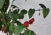 红萼苘麻是锦葵科、苘麻属常绿软木质灌木,叶绿色,长5-10厘米,心形,叶端尖,叶缘有钝锯齿,有时分裂,有细细的叶柄;叶互生,掌状叶脉;花单生于叶腋,具长梗,下垂;花萼红色,半套着大约4厘米长的花瓣,…全部>>