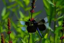 黑丽翅蜻属蜻科,是一类很原始的昆虫,河南、山东、安徽、江苏、福建、浙江、广东、广西等均有分布。面色浓,具毛,除前唇基色稍淡外,其余部分及头顶全为具金属光泽的蓝绿色或蓝褐色。后头褐色,后缘具毛。前胸黑色。…全部>>