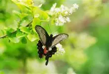 玉带凤蝶是鳞翅目凤蝶科凤蝶属昆虫,又称白带凤蝶、黑凤蝶、缟凤蝶、梁山伯凤蝶。雄蝶前翅外缘、后翅中央有7个大型黄白斑,排列成带。老熟幼虫深绿色,头部黄褐色,后胸前缘有1条齿状的黑色线状横纹,…全部>>