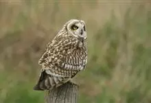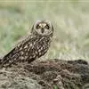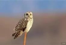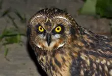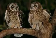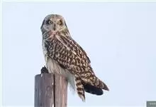 短耳鸮又名小耳木兔、田猫王、夜猫子等,是鸮形目鸱鸮科耳鸮属中小型猛禽动物。成鸟面盘显著,眼周黑色;眼先及内侧眉纹灰白色,面盘余部棕黄色杂以黑色细羽干纹;耳簇羽短小而几乎不外露,…全部>>