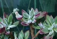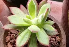 锦晃星是景天科、石莲花属多肉植物。多年生小灌木状多浆植物,灰绿色卵状倒披针形肥厚肉质叶轮状互生,全缘,椭圆尖头,长3-4厘米,宽2-2.5厘米,厚约1厘米,玲凉季节阳光下,叶端及上缘呈红色。…全部>>