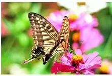 玉带凤蝶是鳞翅目凤蝶科凤蝶属昆虫,又称白带凤蝶、黑凤蝶、缟凤蝶、梁山伯凤蝶。雄蝶前翅外缘、后翅中央有7个大型黄白斑,排列成带。老熟幼虫深绿色,头部黄褐色,后胸前缘有1条齿状的黑色线状横纹,…全部>>