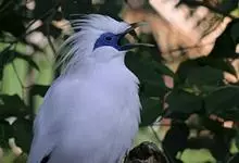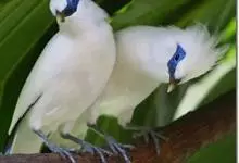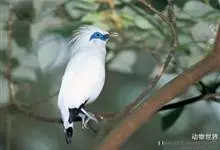 长冠八哥:是一种大型椋鸟,体长约25厘米,雌雄相似,外形俊朗,羽冠发达,眼睛四周和面部裸出,裸露部分为蓝色,全身羽毛纯白色,尾部和翼端的边缘呈黑色,脚灰色。全身白色,具较长冠羽,…全部>>